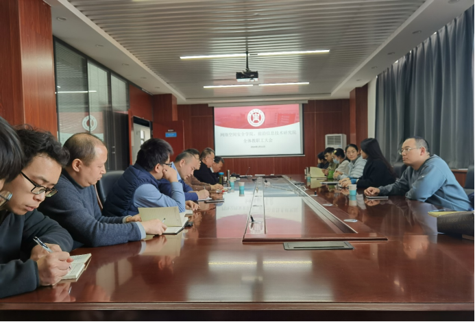 、前沿信息技术研究院第一次全体教职工大会。会议由闫丽霞主持。