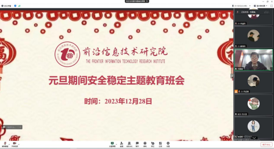 召开“元旦期间安全稳定主题教育班会”,此次班会采用线上的形式,由刘建美、刘长慧老师主持,全体研究生参加。