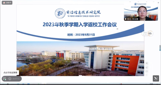 8月31日,av视频app 举行了2023年秋季学期研究生返校工作线上会议。会议由刘长慧主持,副院长潘恒、刘建美和所有在校研究生参加。