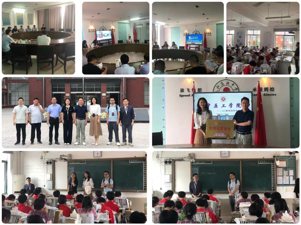 “实现更名大学、获得博士授权、建成高水平工科大学”的“三步走”发展战略以及全力筹备河南电子科技大学等情况。潘恒分别从专业设置、优势专业、招生政策、毕业生就业状况以及就业优势等方面作了招生宣讲。程俊龙对高考志愿填报政策进行了详细解读。姚中原、张龙分别做了区块链和人工智能科普讲座。随后,招生组分发了纸质宣传资料,同时与高三师生展开了深入交流,并对师生提出的问题予以详细解答。最后,双方进行了中原工学院优质生源基地授牌仪式。当日晚,该校微信公众号发布了“固始一高隆重举行中原工学院优秀生源基地授牌仪式”相关报道。同日上午,招生组又来到固始县高级中学第二中学,与该校李光新副校长进行了深入交流,发放了相关的纸质宣传资料,与实验班班主任建立了微信交流群,加强对老师和学生的沟通交流。