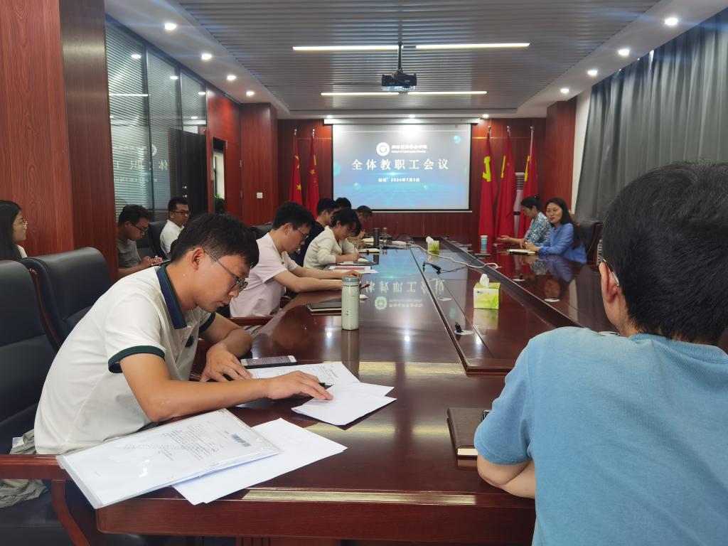 、前沿信息技术研究院在3号组团楼B1211会议室召开了2024年春季学期期末全体教职工大会。会议由党总支副书记闫丽霞主持。