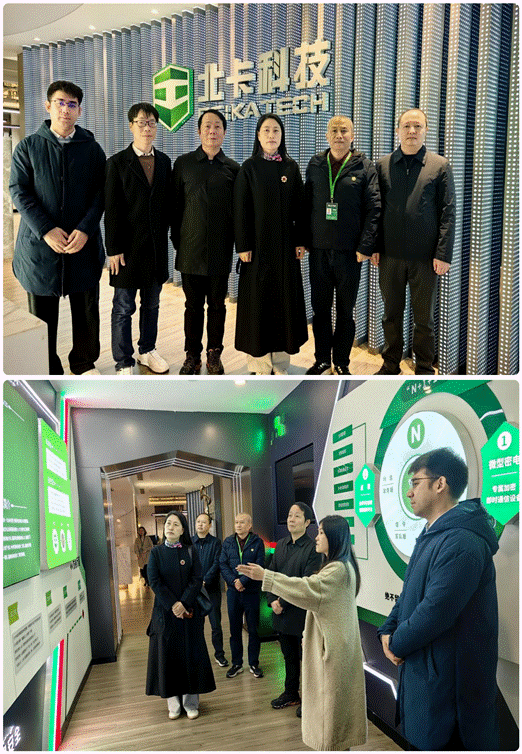 在北卡科技有限公司,一行人参观了公司并与公司人员进行了深入交流,了解了公司的特色文化、前沿安全产品、技术研发状况以及相关岗位人才需求。双方初步就产教融合、校企合作进行了沟通,为进一步达成深度合作,打下了一定的基础。