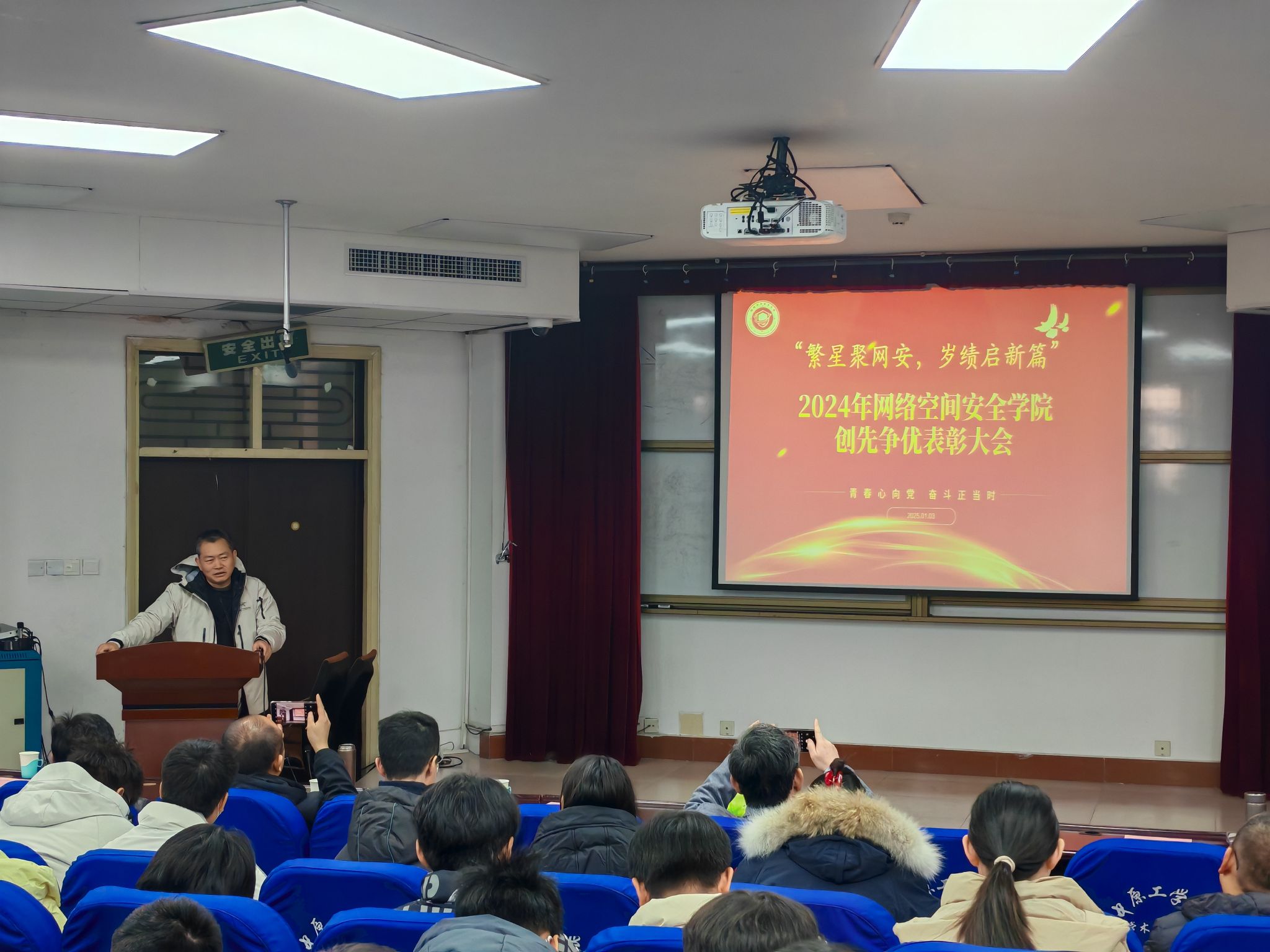 在龙湖校区4号楼隆重举行了“繁星聚网安,岁绩启新篇”2024年创先争优表彰大会。中原工学院学术副校长、av视频app