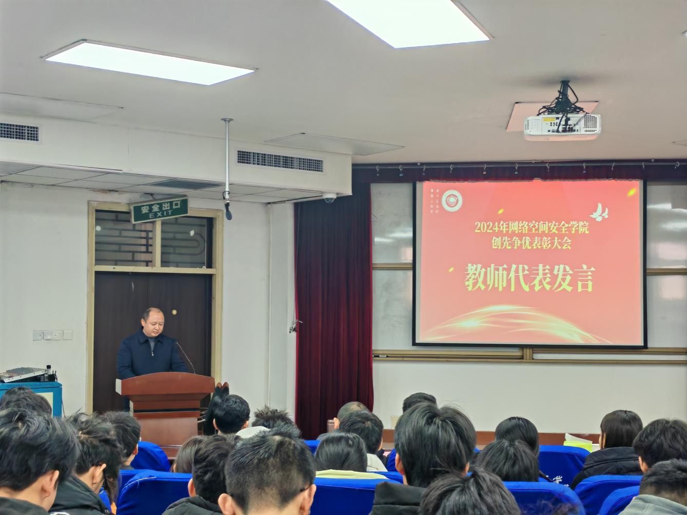 大会现场气氛欢快热烈,参会师生热情高涨,爆发出阵阵掌声。此次表彰大会的成功举办不仅肯定了全院师生2024年工作成绩,更鼓舞了全院上下干事创业的士气,营造了创先争优、积极向上的氛围。学院将以崭新的面貌,团结一致,不断提升学院的教学质量、科研水平和人才培养质量,共同开启2025年新篇章,为学校更名大学、网络空间安全事业的发展做出更大的贡献!