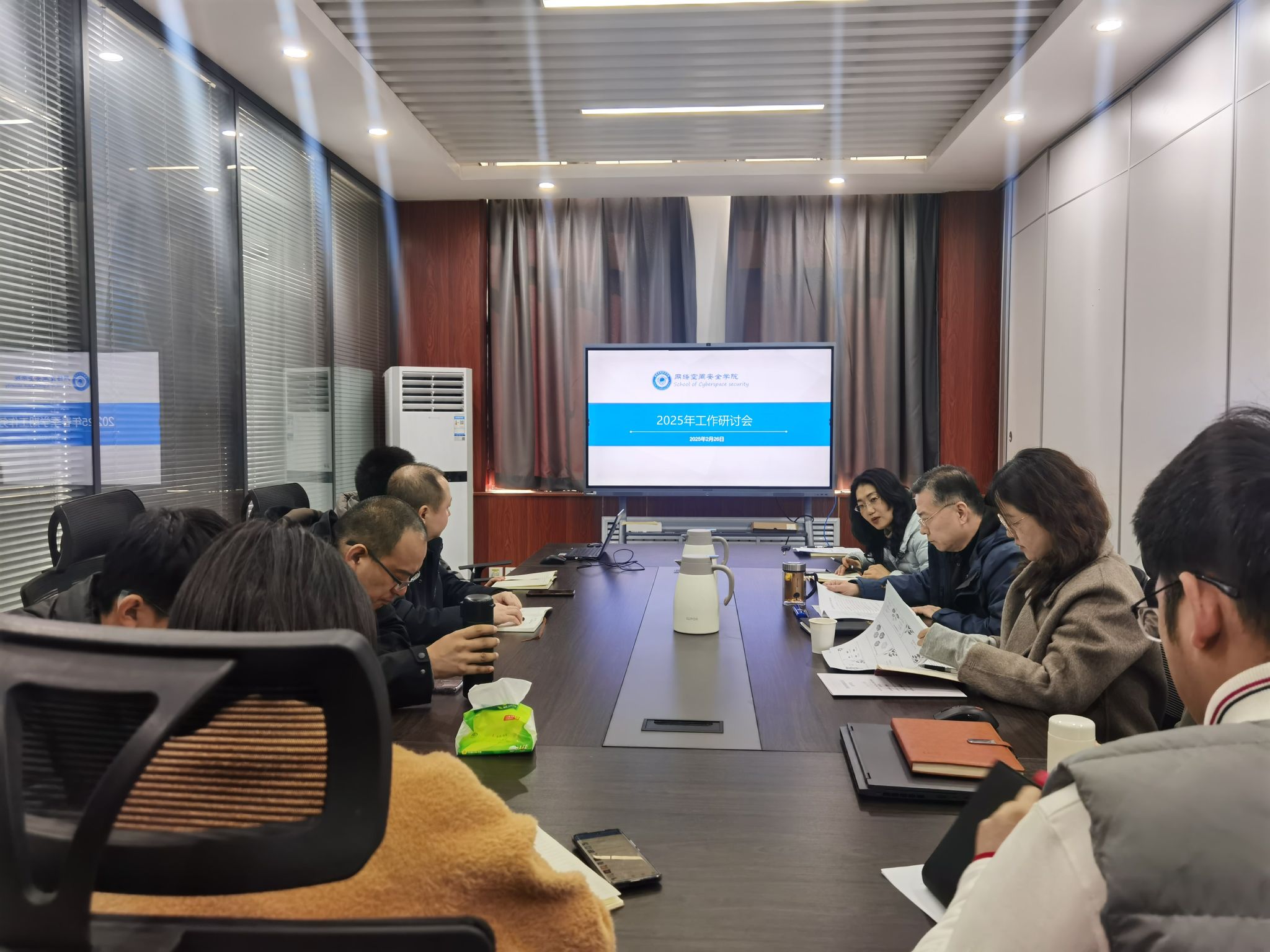 召开2025年工作研讨会,党总支书记詹晋浩、执行院长潘恒、副院长兼副书记邢颖出席会议,教研室、实验室、学工办、教学办及行政办公室人员参会。会议由潘恒主持。