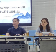 于6月3日下午3时,在3号组团楼 A1208 教室召开了 2024 - 2025 学年第二学期本科生教学检查座谈会。学院党总支书记詹晋浩、教师代表王磊、张龙、姚中原、学工办副主任郭政良、教学办副主任朱文晶、本科党支部书记牛利月、研究生代表及本科生代表参加此次座谈会。会议由党总支副书记、副院长邢颖主持。