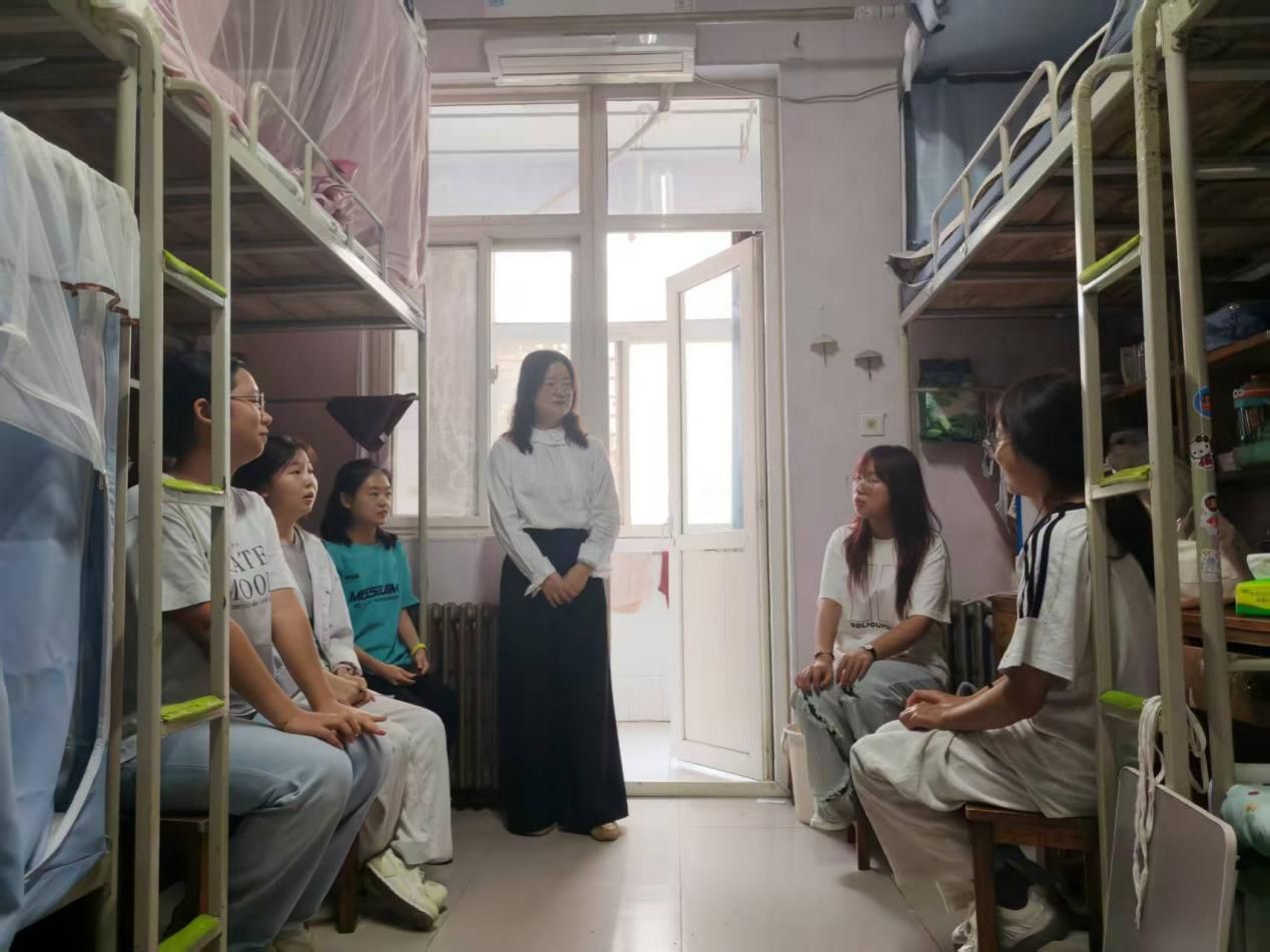 学院党总支副书记、副院长邢颖,学工办副主任郭政良,新生班主任姚中原等一行走访新生宿舍,与新生进行面对面交流,细致询问住宿条件、生活物资及人际交往等情况,并及时协调解决各类问题,切实帮助新生尽快适应大学生活。