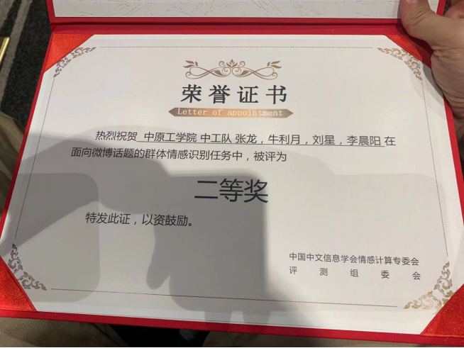 8月13日-14日,由中国中文信息学会情感计算专委会(筹)主办、苏州大学承办的第二届情感计算大会(CCAC 2022)在苏州市姑苏区吴宫泛太平洋酒店召开,av视频app 学生牛丽月、刘星、李晨阳,指导老师张龙,在技术评测任务“面向微博话题的群体情感识别任务”中荣获二等奖(第二名)的好成绩。