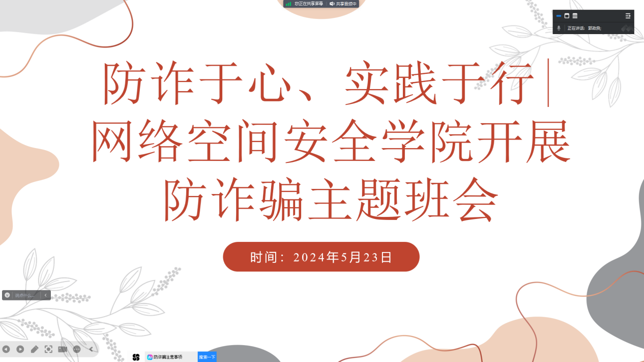 召开“反诈骗主题班会”,会议由辅导员郭政良主持,全体研究生参加。
