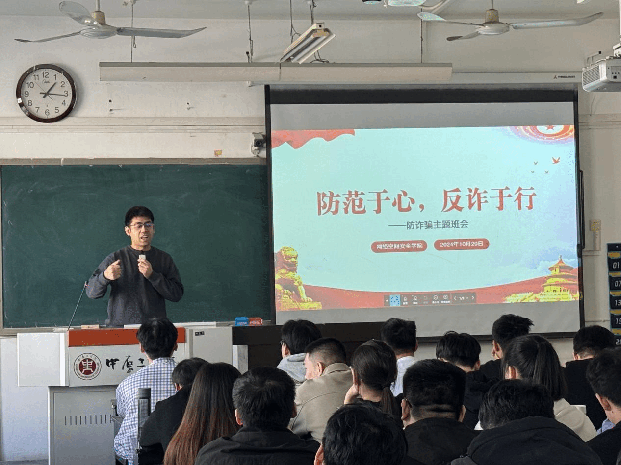 于2024年10月29日在11号教学楼403教室,召开了研究生反诈及宿舍安全教育主题班会。学生工作办公室副主任郭政良及全体研究生出席了本次会议。会议由党总支副书记、副院长邢颖主持。