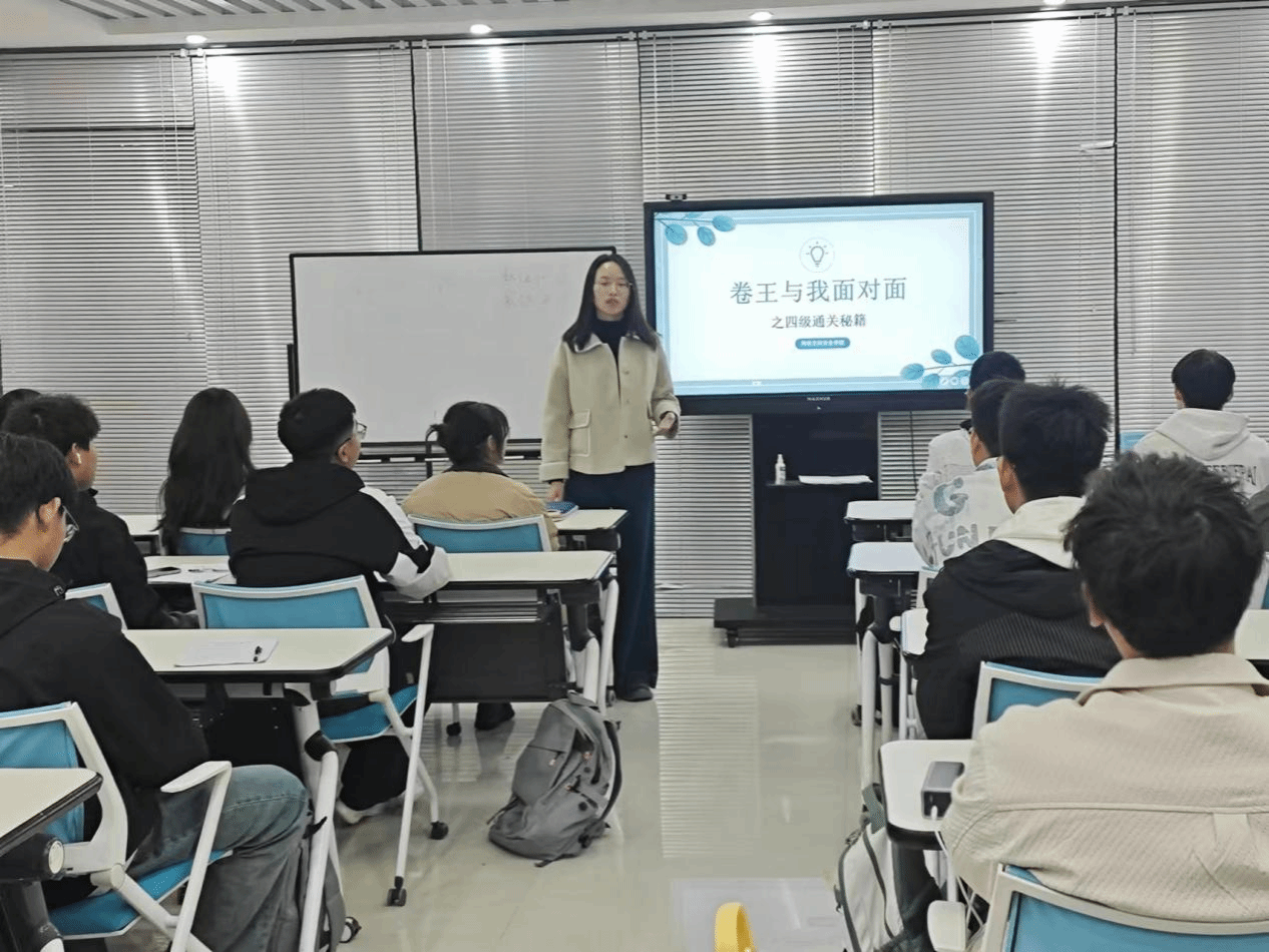 于11月13日在三号组团楼A1208教室成功举办了英语四级交流活动。本次活动由兼职辅导员、马克思主义学院研二学生曹闪闪主讲,全体本科生参与。