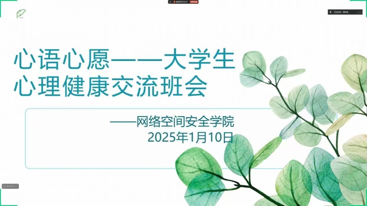 于2025年1月10日组织开展了“心语心愿”寒假假期心理健康交流班会,学院全体学生参加,班会由学工办副主任郭政良主持。