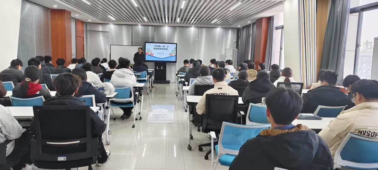 于2月25日在三号组团楼A1208教室举办“开学第一课”心理健康专题讲座。讲座由班主任张龙主持,全体本科生参会。