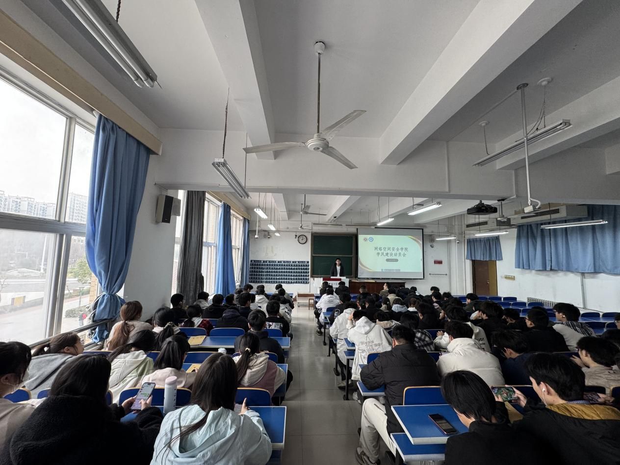 在三号教学楼207教室开展全院学风建设动员会,本次会议由学工办副主任郭政良主持,学院全体学生参加。郭政良向学生们讲解了学院在学风建设方面的各项具体要求,着重强调了学风建设对于学院整体发展以及同学们个人成长的重要意义。接着,结合学生们在不同学科学习态度上的差异,深入剖析了学习积极性和主动性差异较大的原因,并提出了一系列切实可行的解决措施。同时鼓励学生们树立榜样意识,积极参与学科竞赛、社会志愿活动,发挥引领作用,学院将持续加强日常考勤监督、开展学习方法指导活动等,全力以赴致力于推动学院学风建设迈向新的台阶。