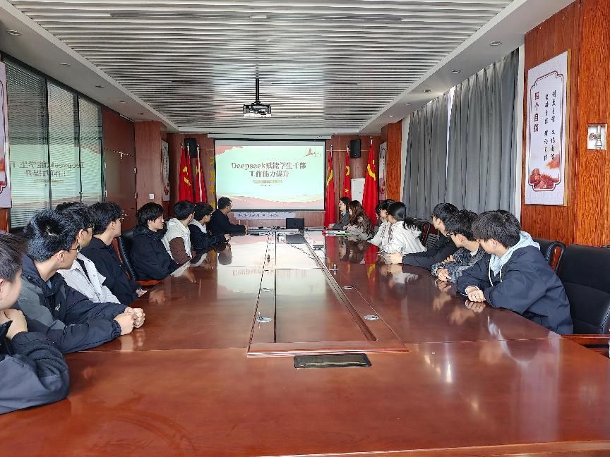 郭政良以Deepseek的使用学习为切入点,围绕新闻稿撰写、PPT智能设计、数据图表绘制三大场景展开教学。特别强调,AI技术的核心价值在于释放人力创造力,建议学生干部将机械性工作(如格式调整、数据统计)交由AI完成,转而聚焦活动策划、资源整合等高阶能力培养。会上同步推荐了MindShow、WPS智能写作等六款协同工具,并对学生干部们在未来工作中的表现充满期待。