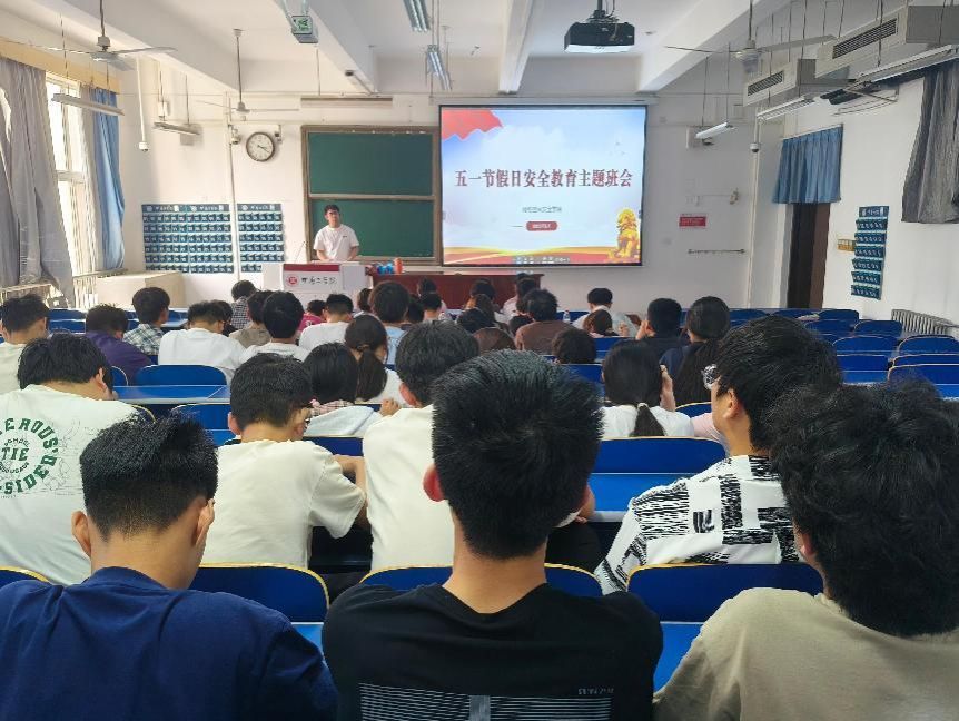 于三号教学楼329教室召开五一节假期安全教育主题班会。本次班会由学工办副主任郭政良主持,全体在校生参与。