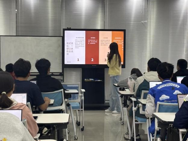 培训内容涵盖办公软件操作与新闻写作等常见工作场景。梁金伟结合实操演示,详细讲解了Excel表格从创建、公式运算到数据筛选与排序等实用功能,帮助新生有效应对日常数据整理任务。胡楚昊围绕PPT制作,从主题确定、逻辑构建到视觉呈现等多个维度展开讲解,通过实例分析介绍了制作技巧,并推荐了多款辅助工具,助力学员快速提升演示效果。董贯霖系统介绍了Word文档的基本操作,包括界面功能、文档编辑与格式调整等内容,并分享了实用设置技巧,帮助新生熟练掌握文档处理能力。禹青莉聚焦新闻稿写作规范,重点讲解了标题拟写、内容组织等方法,针对新生常见的事实表述不清、语言冗余等问题,结合案例进行了分析与修改指导,提升大家的写作规范性。