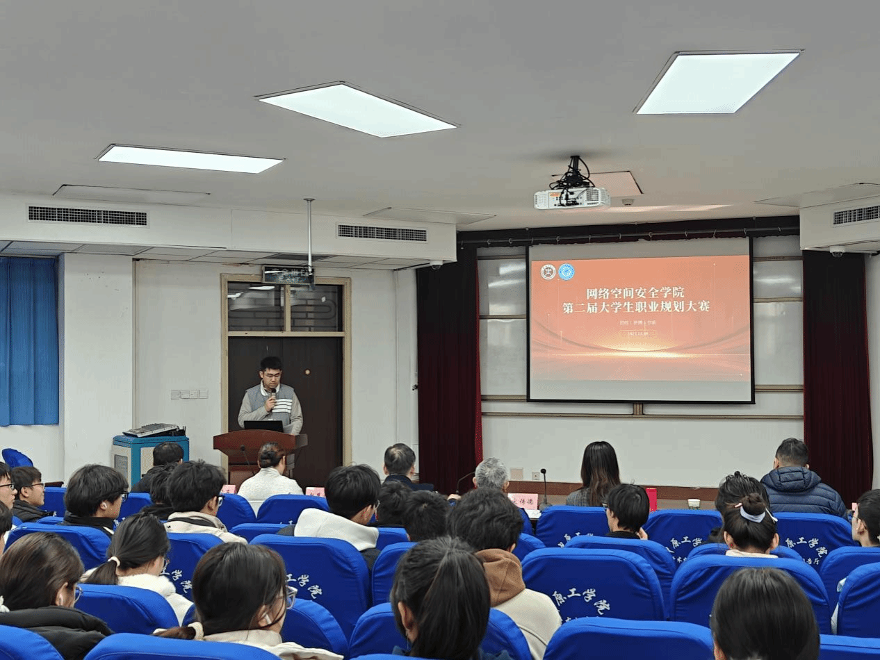 邢颖致开场辞,她表示,本次大赛是响应国家大学生生涯教育与就业指导号召的举措,旨在引导学生树立科学的成长择业观、提升就业竞争力。她还阐释了职业规划的重要性,强调了数字化时代网安行业的重要地位与人才缺口,介绍了学院产教融合理念,并预祝大赛圆满、学子赛出风采。