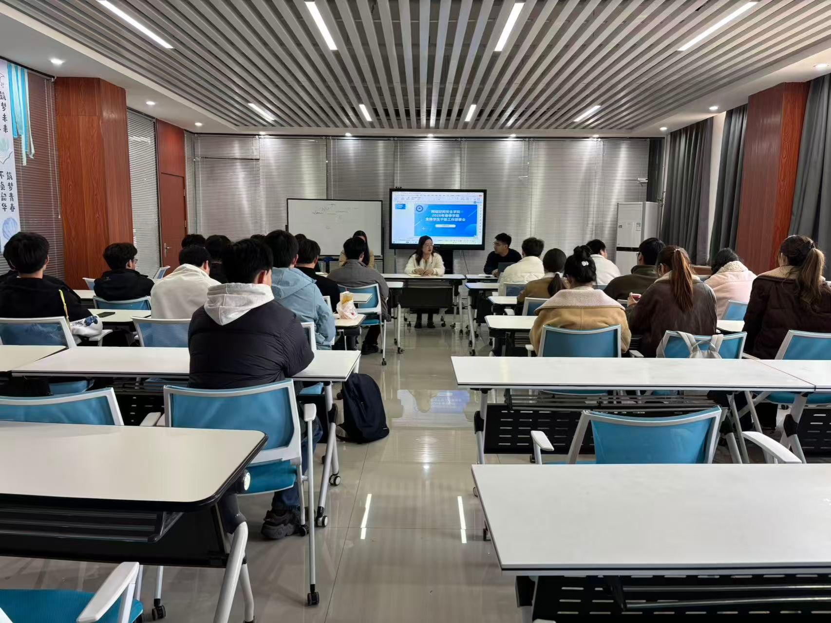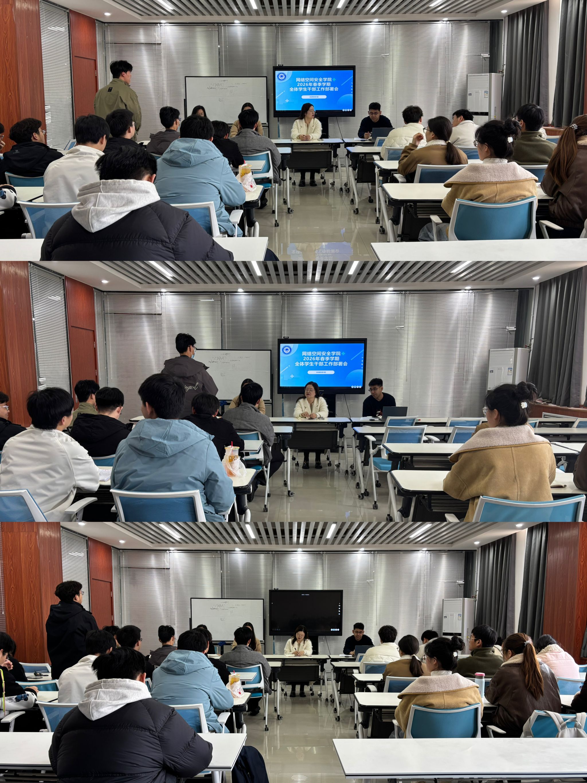 于3月10日在三号组团楼A1208召开2026年春季学期全体学生干部工作部署会。学院党总支副书记、副院长邢颖,辅导员郭政良,兼职辅导员马梦甜、刘青及全体学生干部参会。