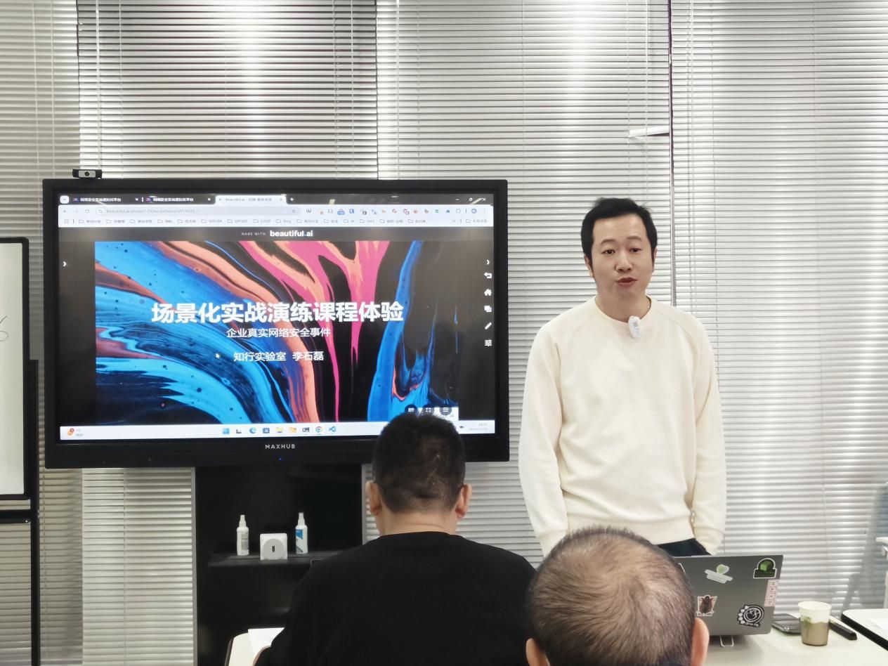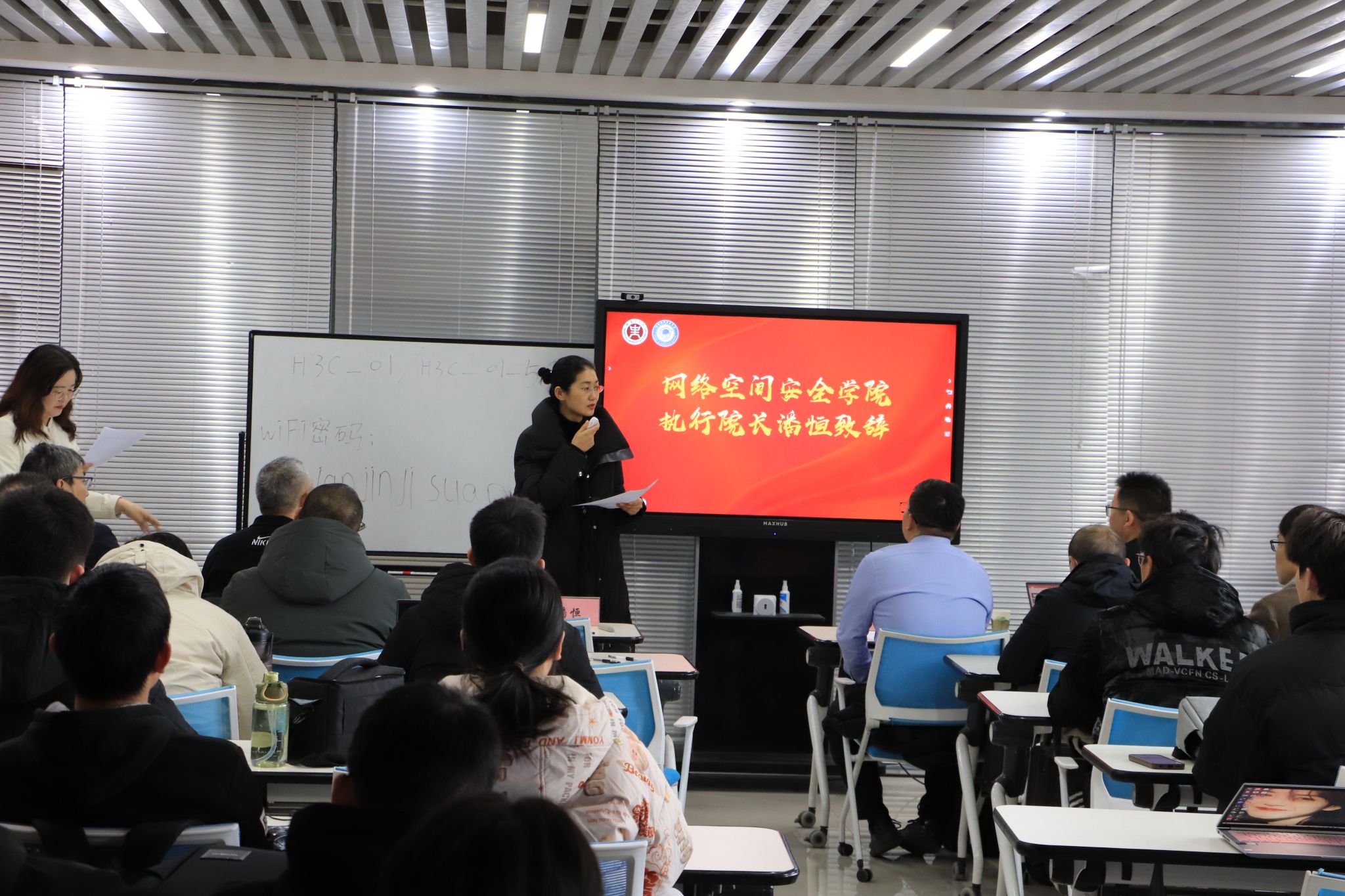 于12月13日在三号组团楼A1208教室,举办“网络无边,安全有界”校企合作交流活动。本次校企合作邀请了知行网安(北京)科技有限公司总经理张广庆、技术总监李石磊、院校总监何建军,河南省科联电子科技有限公司董事长宋传德、总监范新奇,学院执行院长潘恒、教师代表祝卫华等人,以及全体本科生、研究生参加。本次交流活动由党总支副书记、副院长邢颖主持。