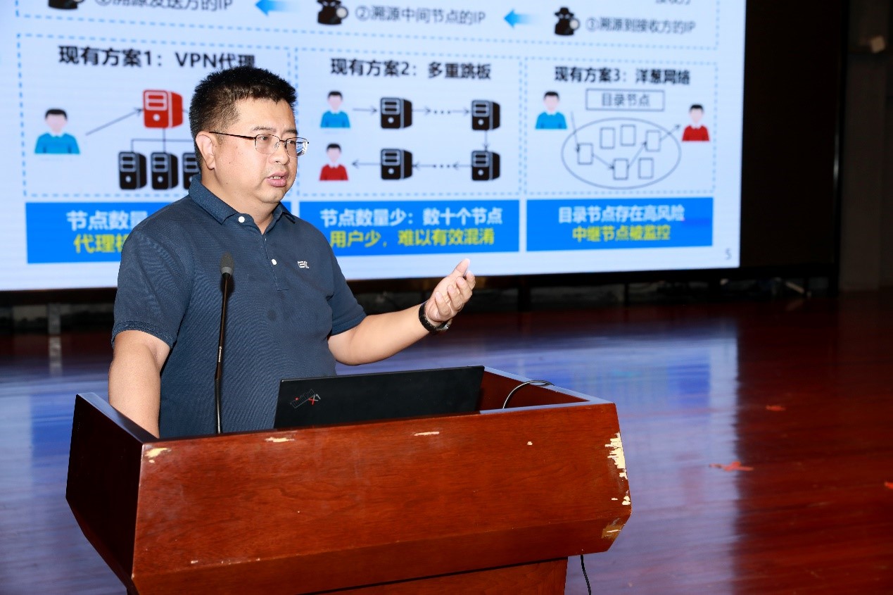 祝烈煌作题为“基于区块链的隐匿通信技术”的报告,介绍区块链与隐匿通信的研究背景,分析区块链在隐匿通信和匿名通信中的技术原理和优势,展望区块链隐匿通信的发展前景,并分享团队在相关方向的研究进展。